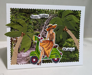 I think we all have many favorite die cuts from square or round to houses and forests. My first card is a slimline card, which I haven't done in quite some time. I've cut an Elizabeth Craft Designs (ECD) fence to make it into train tracks by cutting off the fence tops. I had fallen in love with a card from an ECD DT when these die cuts came out and had to get that fence just to make train tracks.